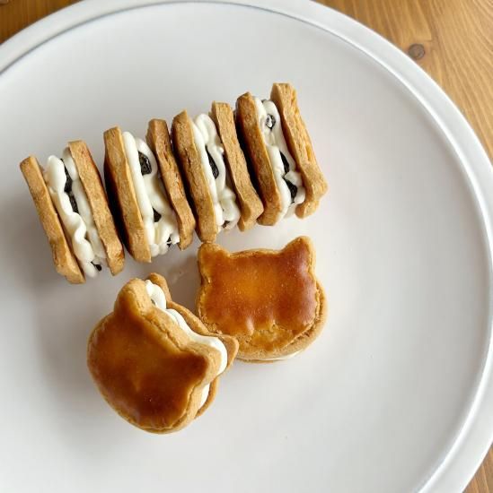 ザクっとしたクッキー生地にミルキーなバタークリームとラムレーズンをたっぷりサンドしました。